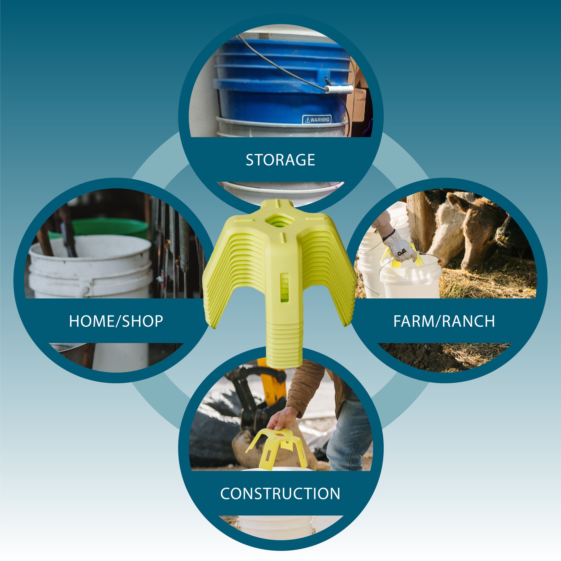 The idea for Unstuckit My Bucket began when our owner walked into his garage to use several of the 5-gallon buckets that were stacked together and stored in the corner of his garage. Several of the buckets were stuck together and he unsuccessfully tried everything he could think of to pry the buckets apart. Unfortunately, this wasn’t the first time he experienced this common problem but, he was determined that it would be the last time! He collaborated to engineer the design of the 5-gallon bucket spacer. Unstuckit My Bucket was created to prevent the frustration of having to pull 5-gallon buckets apart when they get stuck together. Unstuckit My Bucket is a simple 5-gallon bucket storage solution for anyone who owns more than one 5-gallon bucket.